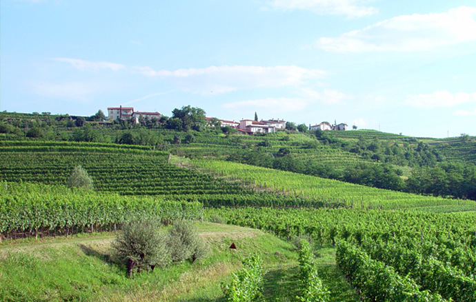 The vineyards are planted in selected, high quality locations of the Brda district on both the Slovene and Italian sides of the border (DOC Collio Goriziano). The soil developed on Eocene flysch sediments, offering excellent growing sites for vines. The vineyard slopes are terraced and face south. The Adriatic Sea is only twenty kilometres away, on average, and its proximity accounts for smaller temperature fluctuations through the year and a rather pleasant microclimate. The proximity of the sea creates distinct conditions due to the sunlight being reflected from the sea`s surface, causing double exposure to the sun`s rays. The influx of air is twofold: from the south, warm air penetrates from the Adriatic Sea, while cold air masses from the north are partly hindered by the last hills of the Julian Alps. Breezes from the Alps keep the summer nights fresh, playing a favourable role in terms of the acidity and aromatic substances of the grapes.